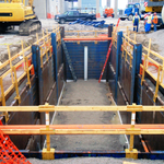 Fold-able and compact, the Ladder Platform offered from GME is able to be used on sheet pile, slide rail and trench shield projects.